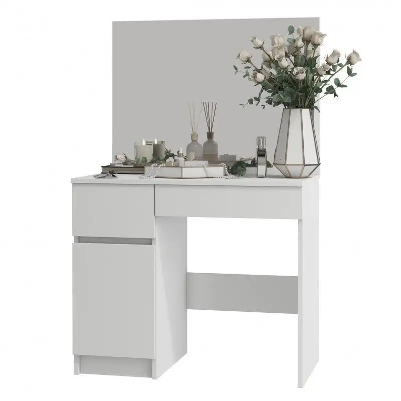 Levyn yläkerros peitetään usein erityisellä kalvolla, joka varmistaa huonekalun lujuuden. Viimeisimpien tuotantoteknologioiden avulla nämä laatat voivat olla kosteudenkestäviä, minkä vuoksi nämä materiaalit eroavat monipuolisuudestaan ja sopivat mihin tahansa huoneeseen. Meikkipöytä NORE P-2 / SL peilillä 900×600 mm, valkoinen. löytää varmasti paikan kodistasi!