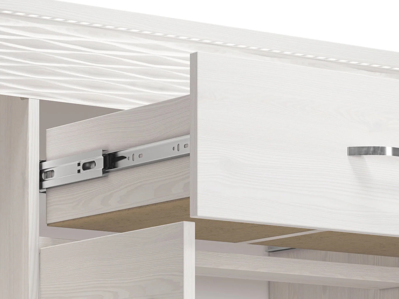 - Lipasto on valmistettu kuitulevystä (MDF) ja melamiinipäällysteisestä lastulevystä (MDP), jossa on ABS-reunapinta;