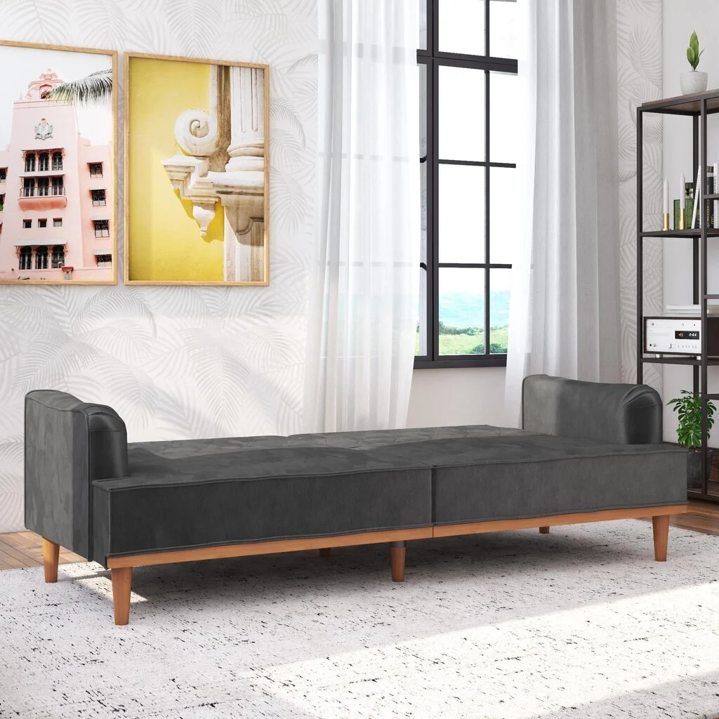 Yksi tämän huonekalun ilmeisimmistä eduista on tilansäästö: niin kauan kuin huonekaluja ei pureta, se vie huomattavasti vähemmän tilaa. Tästä syystä tällä toiminnolla varustetut huonekalut valitsevat useimmiten ne, joiden on laskettava huolellisesti jokainen vapaa tuuma. Mr. Kate Stella Vintage Coil -sohva, 203,5 x 82,5 x 85 cm, harmaa Moderni ja tyylikäs sohva. sopii erinomaisesti myös suurempiin tiloihin: joten siellä on enemmän tilaa muille yksityiskohdille. Useimmissa tämän tyyppisissä huonekaluissa on liinavaatelaatikko sisällä – näin tavaroiden säilytysongelma ratkeaa taas.