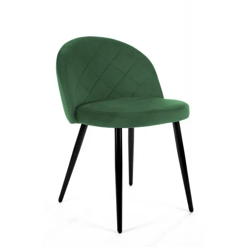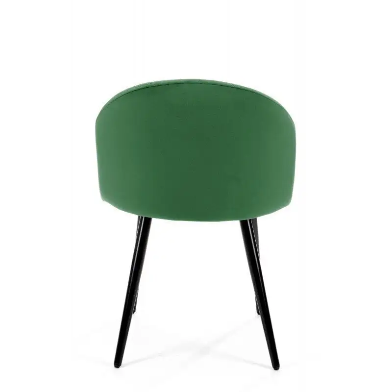 - Tuoleissa on pehmeän pyöreät selkänojat ja niiden istuimet ovat verhoiltu velouur-kankaalla.