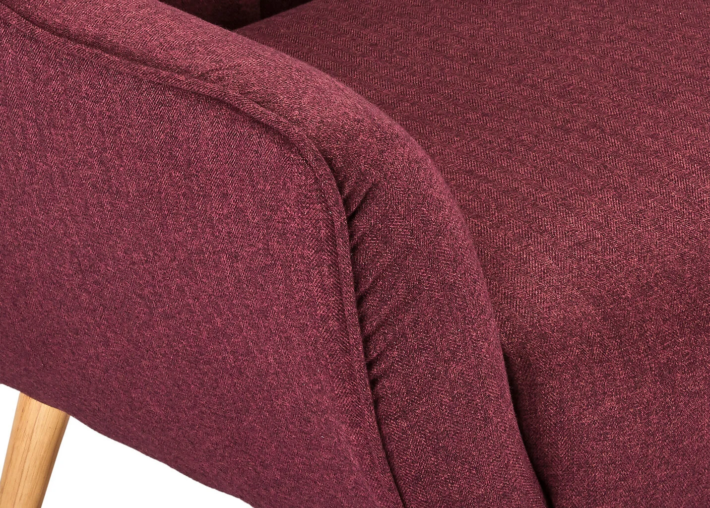 Tyylikäs punainen nojatuoli verhoiltu kankaalla (100 % polyesteriä).