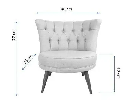 - Huonekalujen ulkomitat: leveys – 80 cm, korkeus – 77 cm, syvyys – 75 cm;