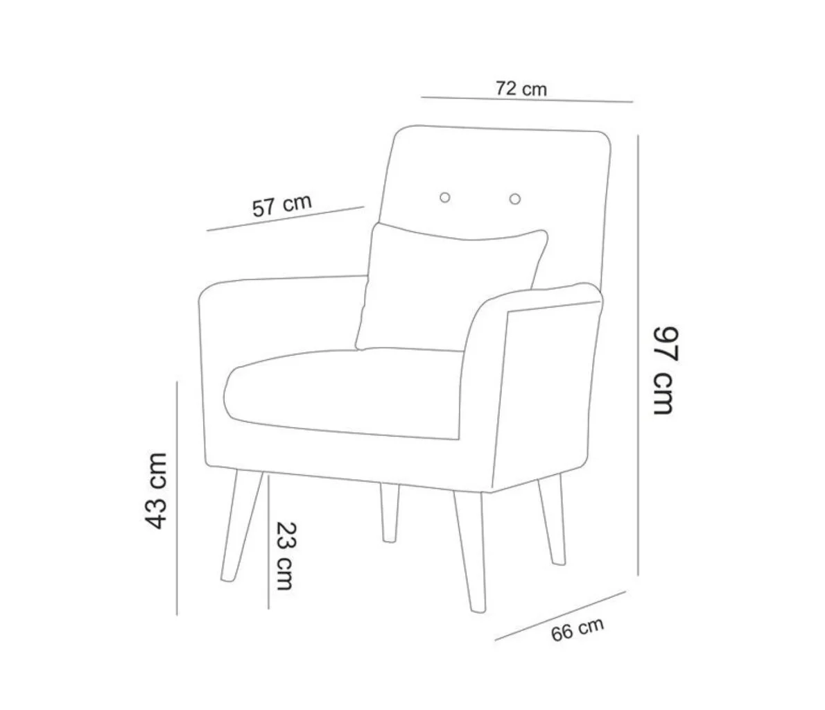- Istuimen mitat: leveys – 49 cm, korkeus – 43 cm, syvyys – 57 cm;