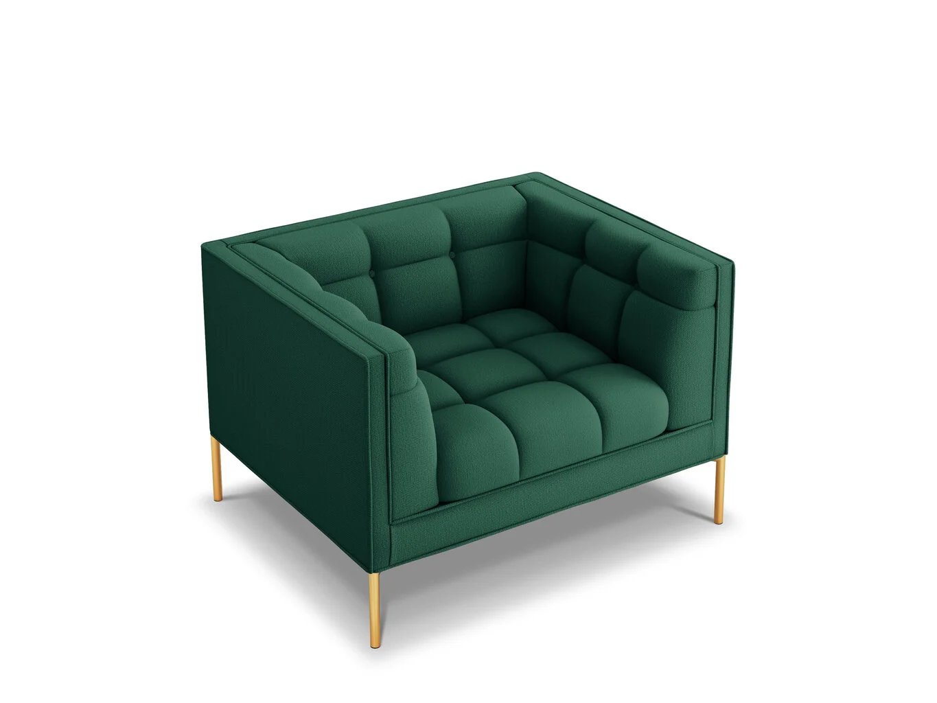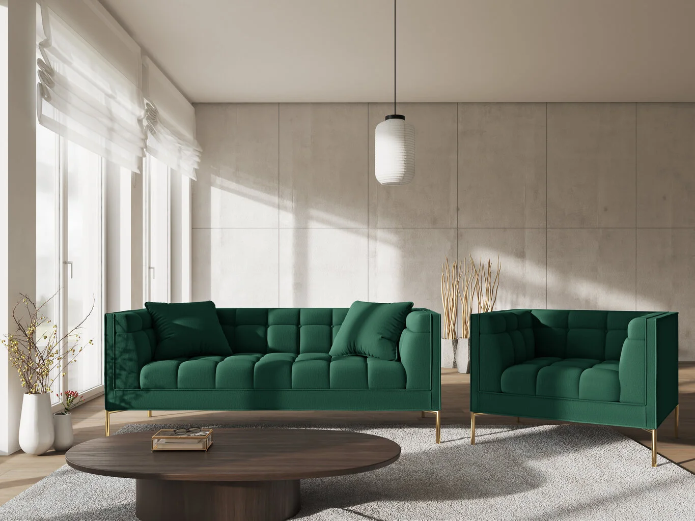 Minimalismi ja luksus yhdessä? Kyllä Nämä ovat huonekaluja Karoo-kokoelmasta. Ne erottuvat yksinkertaisuudesta ja tyylikkäistä yksityiskohdista – kultaiset jalat ja tikattu istuin.