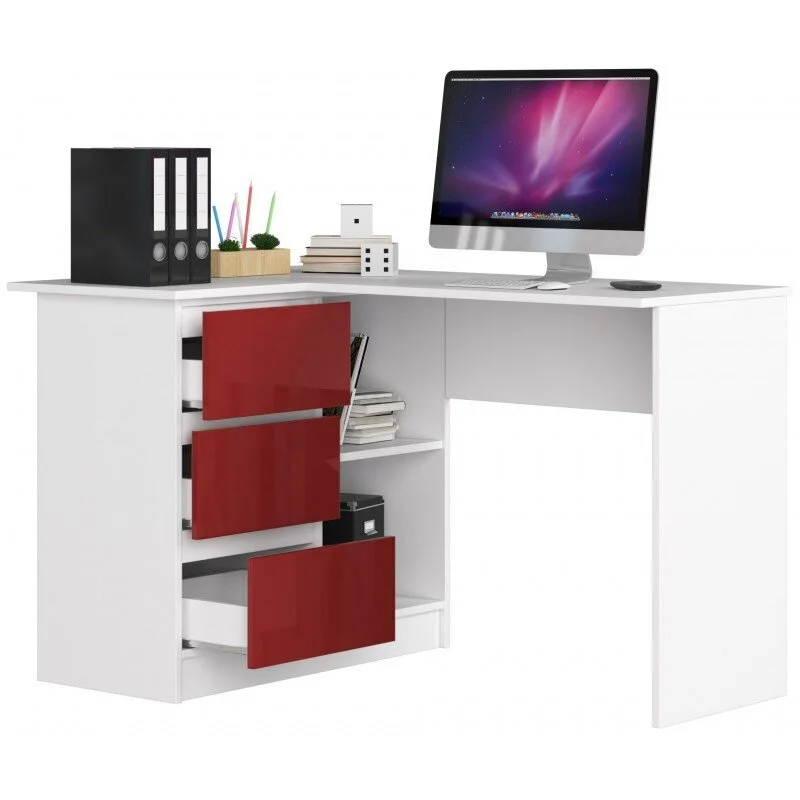 Levyn yläkerros peitetään usein erityisellä kalvolla, joka varmistaa huonekalun lujuuden. Viimeisimpien tuotantoteknologioiden avulla nämä laatat voivat olla kosteudenkestäviä, minkä vuoksi nämä materiaalit eroavat monipuolisuudestaan ja sopivat mihin tahansa huoneeseen. NORE B16, vasemman puolinen Työpöytä , valkoisen /punaisen värinen löytää varmasti paikan kodistasi!