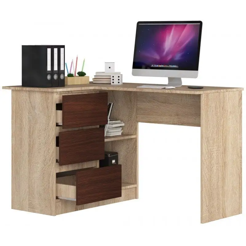 Levyn yläkerros peitetään usein erityisellä kalvolla, joka varmistaa huonekalun lujuuden. Viimeisimpien tuotantoteknologioiden avulla nämä laatat voivat olla kosteudenkestäviä, minkä vuoksi nämä materiaalit eroavat monipuolisuudestaan ja sopivat mihin tahansa huoneeseen. NORE B16, vasen, Työpöytä valkoinen / tammi löytää varmasti paikan kodistasi!
