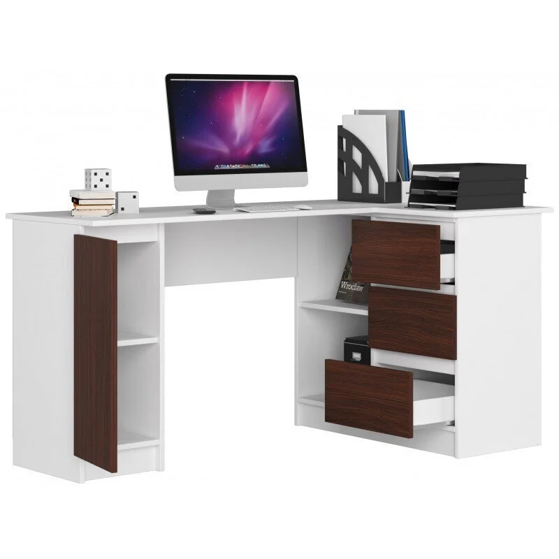 Levyn yläkerros peitetään usein erityisellä kalvolla, joka varmistaa huonekalun lujuuden. Viimeisimpien tuotantoteknologioiden avulla nämä laatat voivat olla kosteudenkestäviä, minkä vuoksi nämä materiaalit eroavat monipuolisuudestaan ja sopivat mihin tahansa huoneeseen. NORE B20 kirjoituspöytä, hyllystö vasemmalla, 155 x 77 x 85 cm, valkoinen / tummanharmaa löytää varmasti paikan kodistasi!