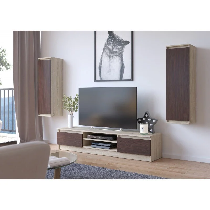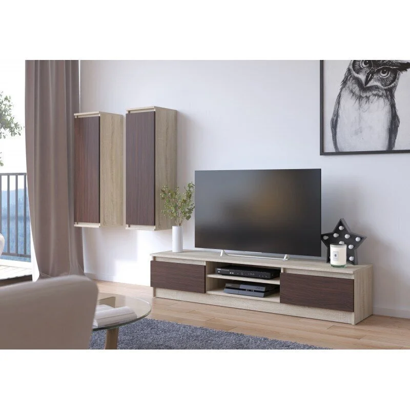 - erillinen TV-pöytä kahdella avoimella hyllyllä ja kahdella ovella;