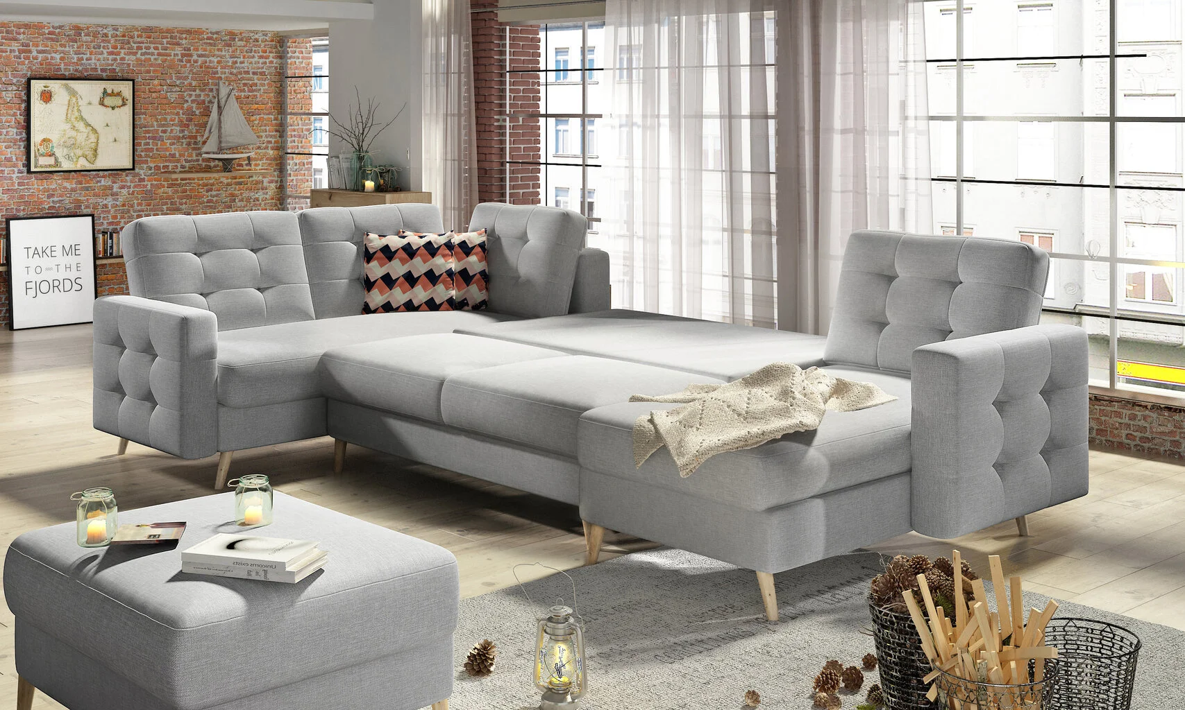 Yksi tämän huonekalun ilmeisimmistä eduista on tilansäästö: niin kauan kuin huonekaluja ei pureta, se vie huomattavasti vähemmän tilaa. Tästä syystä tällä toiminnolla varustetut huonekalut valitsevat useimmiten ne, joiden on laskettava huolellisesti jokainen vapaa tuuma. Kulmasohva Asgard U, sininen sopii erinomaisesti myös suurempiin tiloihin: joten siellä on enemmän tilaa muille yksityiskohdille. Useimmissa tämän tyyppisissä huonekaluissa on liinavaatelaatikko sisällä – näin tavaroiden säilytysongelma ratkeaa taas.