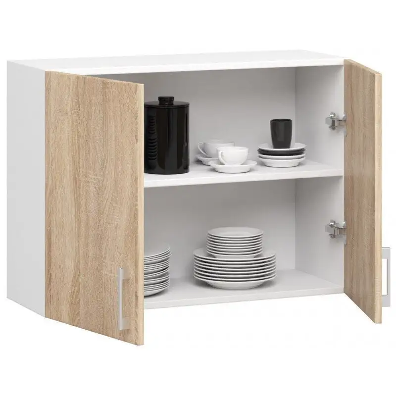 Levyn yläkerros peitetään usein erityisellä kalvolla, joka varmistaa huonekalun lujuuden. Viimeisimpien tuotantoteknologioiden avulla nämä laatat voivat olla kosteudenkestäviä, minkä vuoksi nämä materiaalit eroavat monipuolisuudestaan ja sopivat mihin tahansa huoneeseen. NORE Lima seinäkaappi W80, valkoinen / tammi löytää varmasti paikan kodistasi!