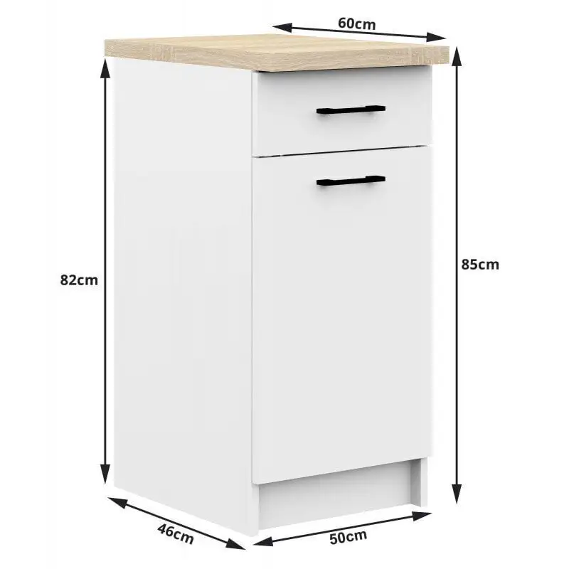 Kompaktit ja käytännölliset huonekalut on helppo nostaa ja siirtää. Joskus se voidaan koota, mikä vapauttaa vielä enemmän tilaa. Tästä syystä on mahdollista luoda minimalistinen ja ergonominen ympäristö, jossa on tilaa muille suunnitteluratkaisuille ja mukavalle käsittelylle. Toisin sanoen NORE Oliwia S50, Keittiökaappi valkoinen sopii helposti luotavaan ympäristöön eikä häiritse viime hetken päätöksiä.