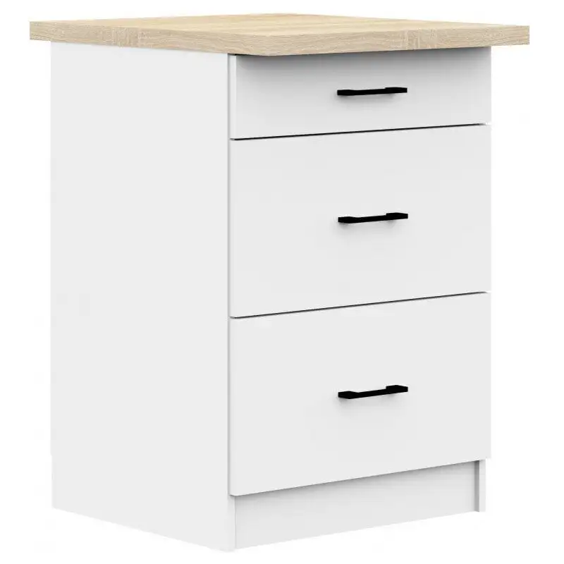 Kompaktit ja käytännölliset huonekalut on helppo nostaa ja siirtää. Joskus se voidaan koota, mikä vapauttaa vielä enemmän tilaa. Tästä syystä on mahdollista luoda minimalistinen ja ergonominen ympäristö, jossa on tilaa muille suunnitteluratkaisuille ja mukavalle käsittelylle. Toisin sanoen NORE Oliwia S60 keittiökaappi, 3 laatikkoa, valkoinen sopii helposti luotavaan ympäristöön eikä häiritse viime hetken päätöksiä.