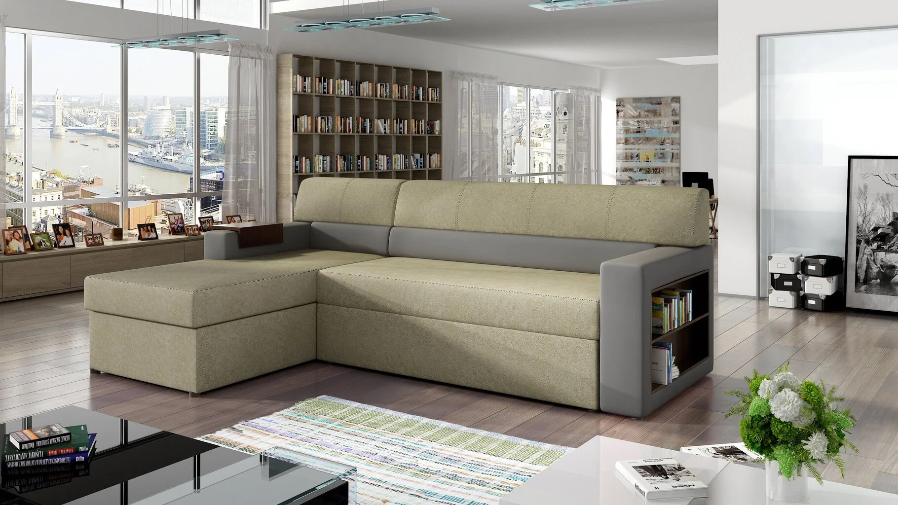 Yksi tämän huonekalun ilmeisimmistä eduista on tilansäästö: niin kauan kuin huonekaluja ei pureta, se vie huomattavasti vähemmän tilaa. Tästä syystä tällä toiminnolla varustetut huonekalut valitsevat useimmiten ne, joiden on laskettava huolellisesti jokainen vapaa tuuma. Rico – Kulmasohva, väri vihreä/harmaa. sopii erinomaisesti myös suurempiin tiloihin: joten siellä on enemmän tilaa muille yksityiskohdille. Useimmissa tämän tyyppisissä huonekaluissa on liinavaatelaatikko sisällä – näin tavaroiden säilytysongelma ratkeaa taas.