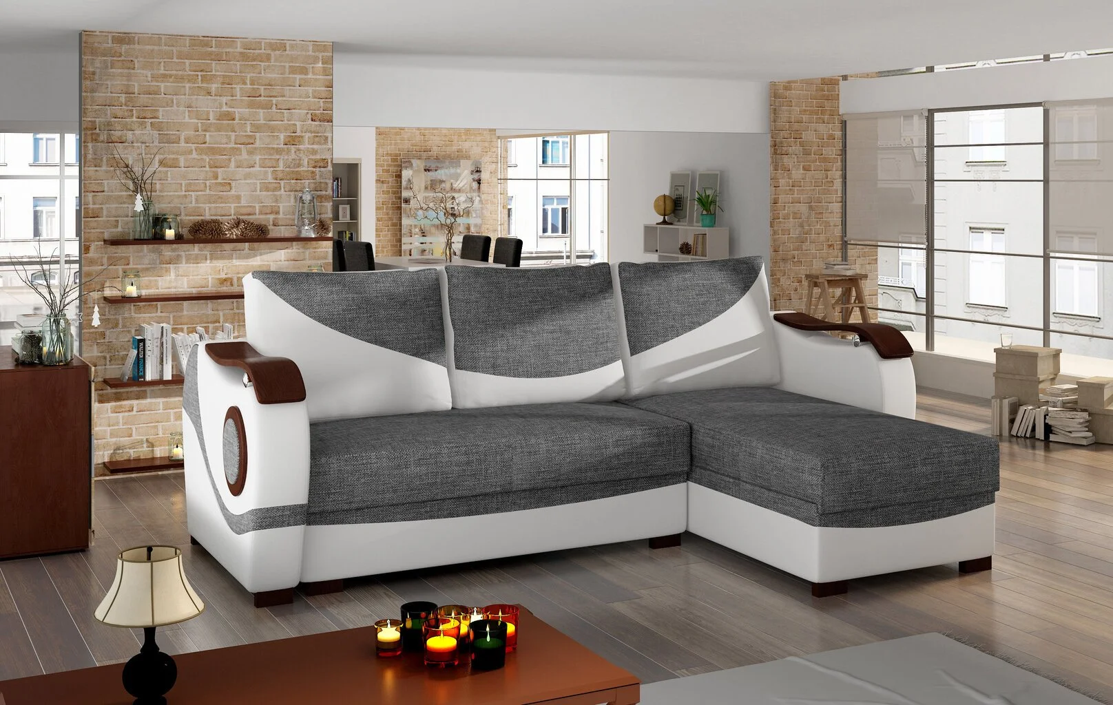 Kompaktit ja käytännölliset huonekalut on helppo nostaa ja siirtää. Joskus se voidaan koota, mikä vapauttaa vielä enemmän tilaa. Tästä syystä on mahdollista luoda minimalistinen ja ergonominen ympäristö, jossa on tilaa muille suunnitteluratkaisuille ja mukavalle käsittelylle. Toisin sanoen Universal kulmasohva Puerto, harmaa/valkoinen sopii helposti luotavaan ympäristöön eikä häiritse viime hetken päätöksiä.