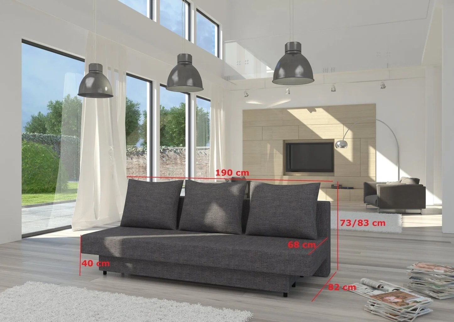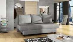 Yksi tämän huonekalun ilmeisimmistä eduista on tilansäästö: niin kauan kuin huonekaluja ei pureta, se vie huomattavasti vähemmän tilaa. Tästä syystä tällä toiminnolla varustetut huonekalut valitsevat useimmiten ne, joiden on laskettava huolellisesti jokainen vapaa tuuma. Vuodesohva Amaza II, harmaa sopii erinomaisesti myös suurempiin tiloihin: joten siellä on enemmän tilaa muille yksityiskohdille. Useimmissa tämän tyyppisissä huonekaluissa on liinavaatelaatikko sisällä – näin tavaroiden säilytysongelma ratkeaa taas.