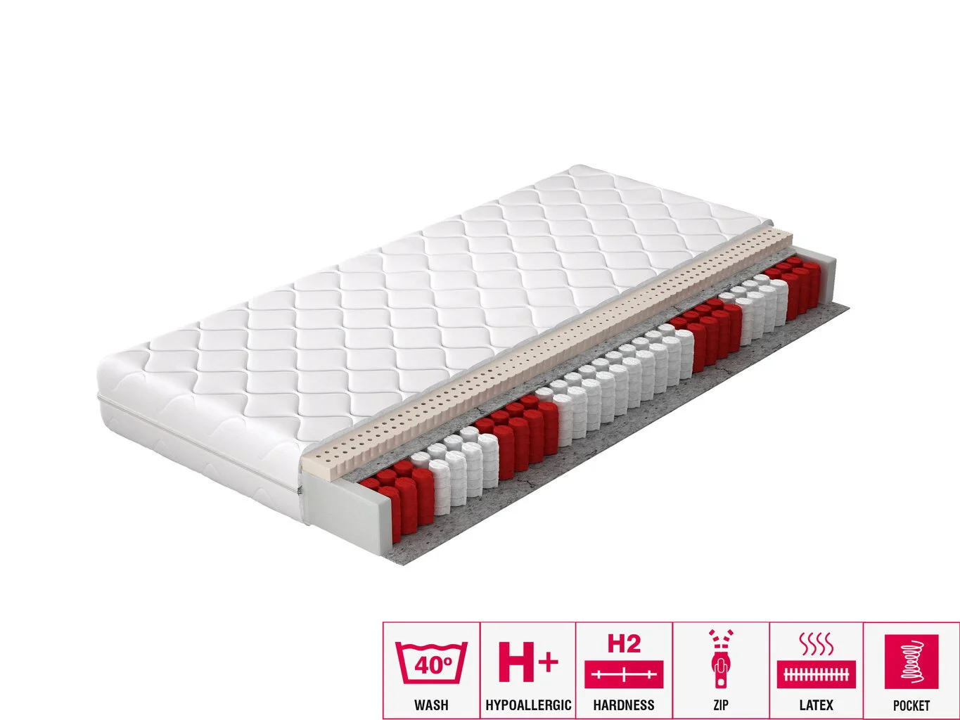 - Päällinen on helposti irrotettava ja pestävä 40 °C asteessa; Vetoketju jakaa patjan päällisen kahteen osaan, joten voit kätevästi pestä molemmat puolet erikseen;