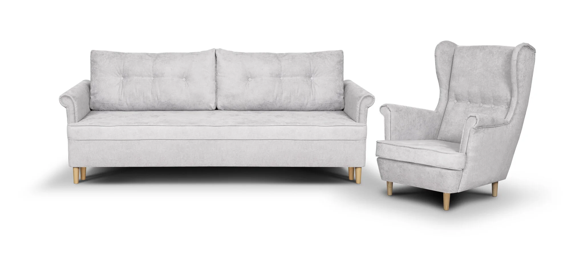 - Pakkaus sisältää: 3-istuttava sohva ja nojatuoli
