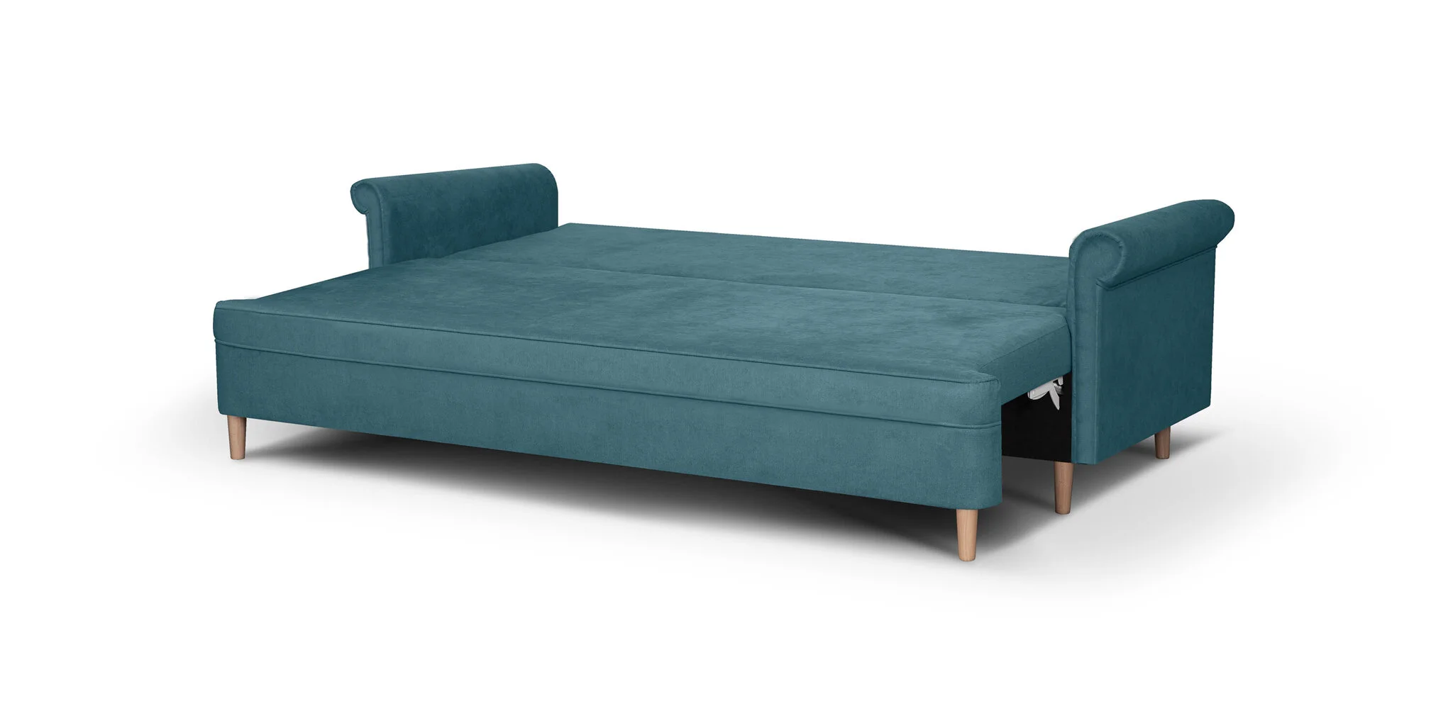 Yksi tämän huonekalun ilmeisimmistä eduista on tilansäästö: niin kauan kuin huonekaluja ei pureta, se vie huomattavasti vähemmän tilaa. Tästä syystä tällä toiminnolla varustetut huonekalut valitsevat useimmiten ne, joiden on laskettava huolellisesti jokainen vapaa tuuma. Pehmeä huonekalusetti Bellezza Elite II, tummansininen sopii erinomaisesti myös suurempiin tiloihin: joten siellä on enemmän tilaa muille yksityiskohdille. Useimmissa tämän tyyppisissä huonekaluissa on liinavaatelaatikko sisällä – näin tavaroiden säilytysongelma ratkeaa taas.