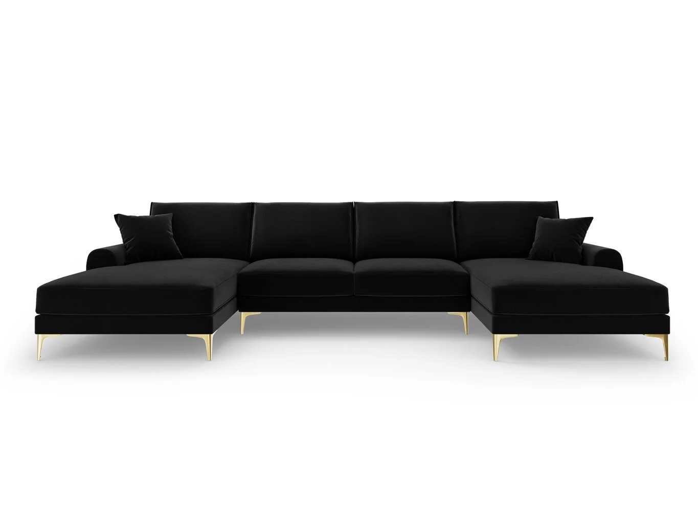 Kaikki nämä modernien huonekalujen ominaisuudet vahvistavat sen tosiasian, että tämän tyylin tuotteet ovat yksinkertaisia ja samalla erittäin yleisiä. Joten ne on helppo sijoittaa kaikenkokoisiin huoneisiin. Pehmeä kulmasohva Mazzini Sofas Madara 6S, musta/kultainen pitää niistä, jotka haluavat luoda minimalistisen ja tilavan tilan, jossa on kunnollinen ja raikas luonto.