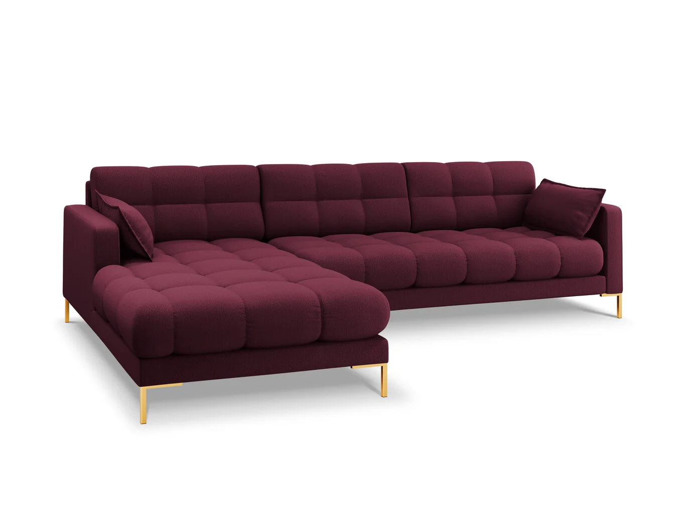 Tämän materiaalin pituussuuntaiset langat ovat paksumpia, mutta harvinaisempia kuin kudelangan, joten pinnassa näkyy varsin havaittavia värisekoituksia, jotka näyttävät leikkauksilta. Tämä lisää näille tuotteille ainutlaatuisuutta. Lisäksi tämä kirjainkuvio piilottaa lian paremmin, joten Pehmeä kulmasohva Micadoni Home Mamaia 5S, tummanpunainen/kulta on käytännöllinen vaihtoehto.