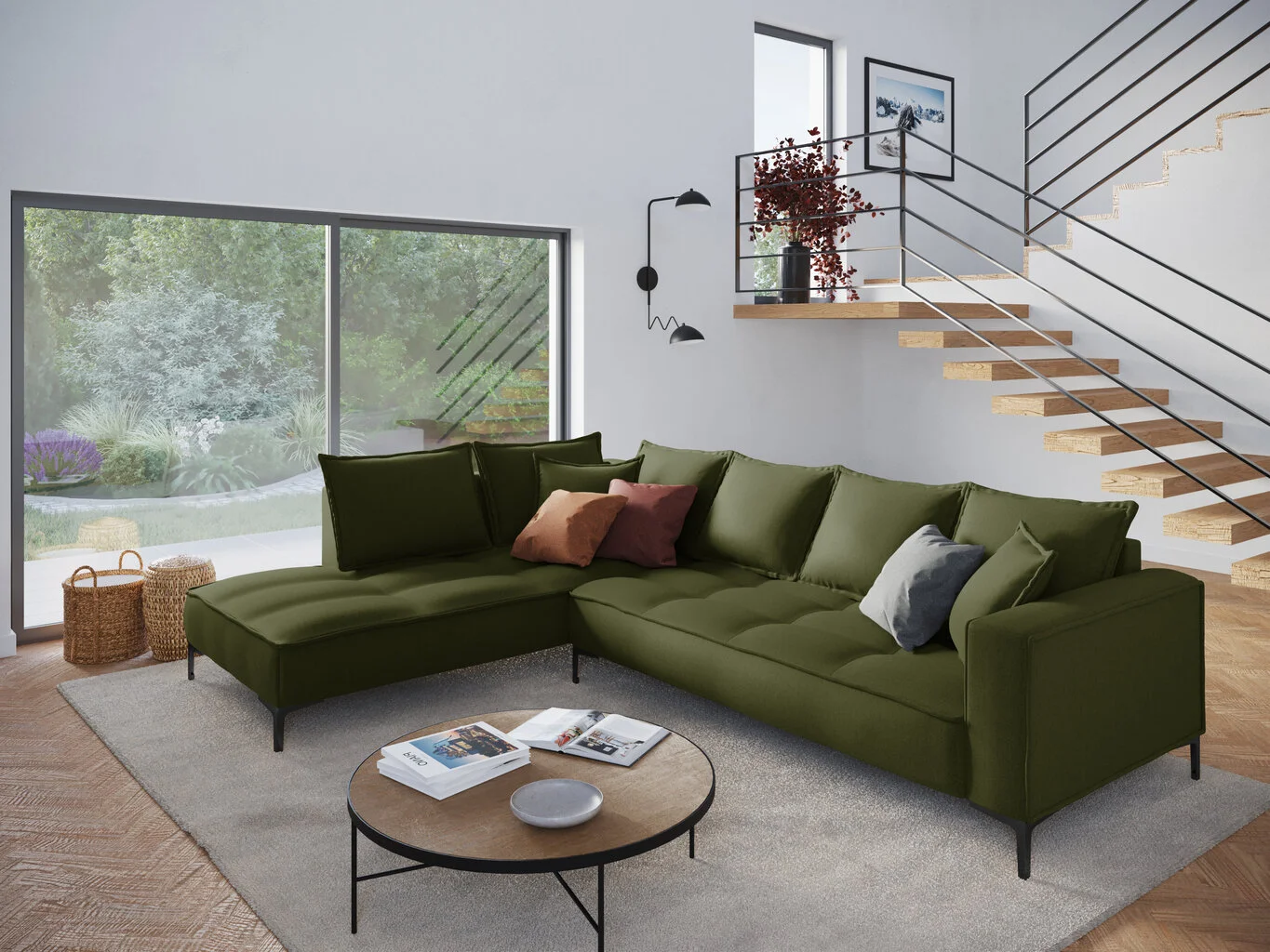 Tämän materiaalin pituussuuntaiset langat ovat paksumpia, mutta harvinaisempia kuin kudelangan, joten pinnassa näkyy varsin havaittavia värisekoituksia, jotka näyttävät leikkauksilta. Tämä lisää näille tuotteille ainutlaatuisuutta. Lisäksi tämä kirjainkuvio piilottaa lian paremmin, joten Pehmeä kulmasohva Micadoni Home Marram 5S, vihreä/musta on käytännöllinen vaihtoehto.
