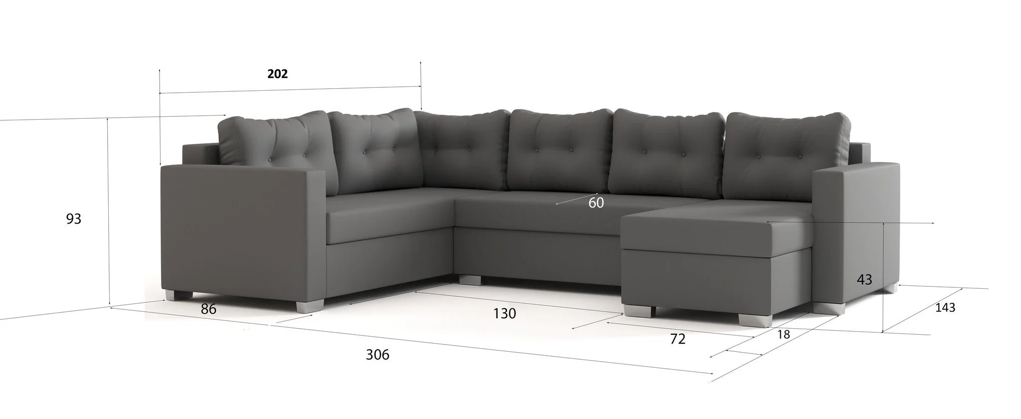 - -Mitat: pituus 306 cm, syvyys 202 cm, korkeus 93, cm;