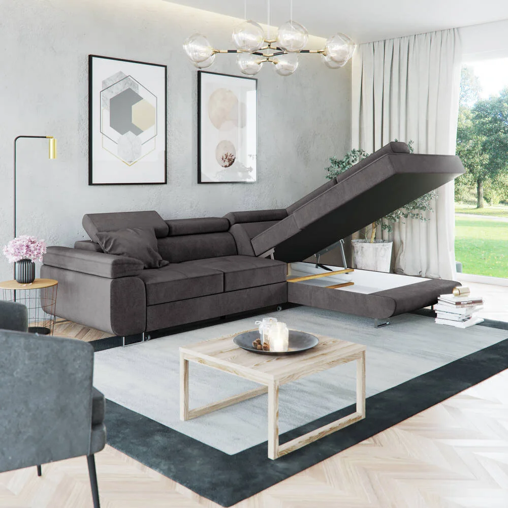 Yksi tämän huonekalun ilmeisimmistä eduista on tilansäästö: niin kauan kuin huonekaluja ei pureta, se vie huomattavasti vähemmän tilaa. Tästä syystä tällä toiminnolla varustetut huonekalut valitsevat useimmiten ne, joiden on laskettava huolellisesti jokainen vapaa tuuma. Pehmeä kulmasohva Selsey Stevil, harmaa sopii erinomaisesti myös suurempiin tiloihin: joten siellä on enemmän tilaa muille yksityiskohdille. Useimmissa tämän tyyppisissä huonekaluissa on liinavaatelaatikko sisällä – näin tavaroiden säilytysongelma ratkeaa taas.