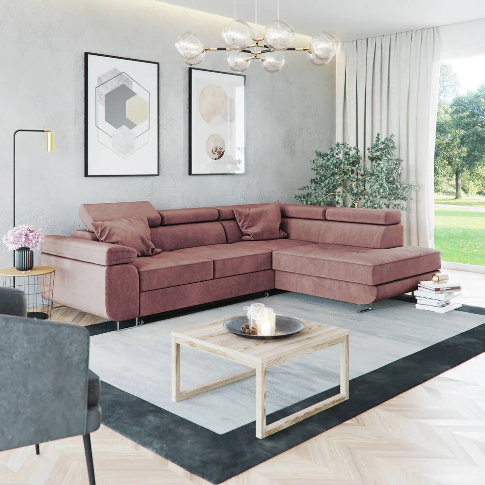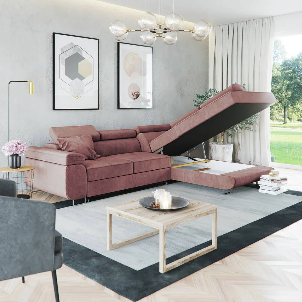 Yksi tämän huonekalun ilmeisimmistä eduista on tilansäästö: niin kauan kuin huonekaluja ei pureta, se vie huomattavasti vähemmän tilaa. Tästä syystä tällä toiminnolla varustetut huonekalut valitsevat useimmiten ne, joiden on laskettava huolellisesti jokainen vapaa tuuma. Pehmeä kulmasohva Selsey Stevil, vaaleanpunainen sopii erinomaisesti myös suurempiin tiloihin: joten siellä on enemmän tilaa muille yksityiskohdille. Useimmissa tämän tyyppisissä huonekaluissa on liinavaatelaatikko sisällä – näin tavaroiden säilytysongelma ratkeaa taas.
