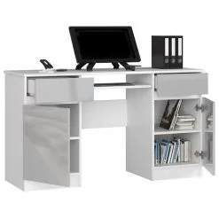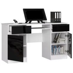 NORE A6 Kirjoituspöytä, Vasemmanpuoleinen, Valkoinen/tummanruskea