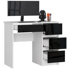 NORE B16 – Kirjoituspöytä, 124,5 X 77 X 85 Cm, Hyllystö Vasemmalla, Valkoinen / Musta