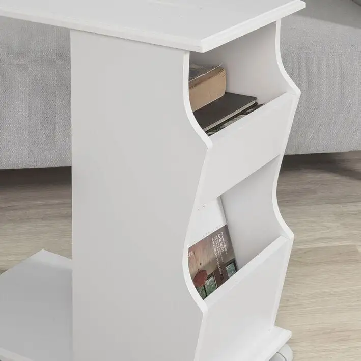 - Liikuteltava ja kompakti 2-hyllyinen pyörillä varustettu pöytä kirjoille, sanomalehdille ja aikakauslehdille;