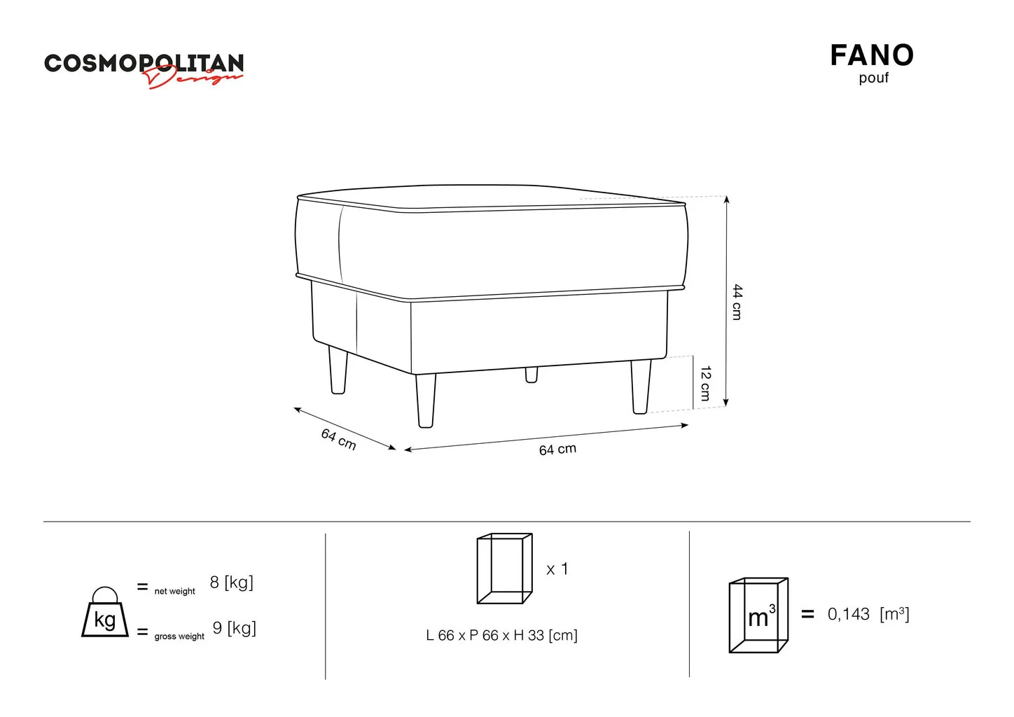 Rahi Fano on moderni sisustusyksityiskohta, joka on luotu erityisesti tyylikkäisiin ja moderneihin koteihin. Tätä rahia voidaan käyttää eri tarkoituksiin – sitä voidaan käyttää lisäistuimena olohuoneessa, pöydän ääressä, sitä voidaan käyttää pienenä pöytänä tarvittavien asioiden sijoittamiseen ja säilyttämiseen tai olemassa olevien huonekalujen jatkeena – jalkatukena. Yhdistä se muihin Fano-kokoelman huonekaluihin luodaksesi mukavan ja tyylikkään kodin tai toimiston sisustuksen.