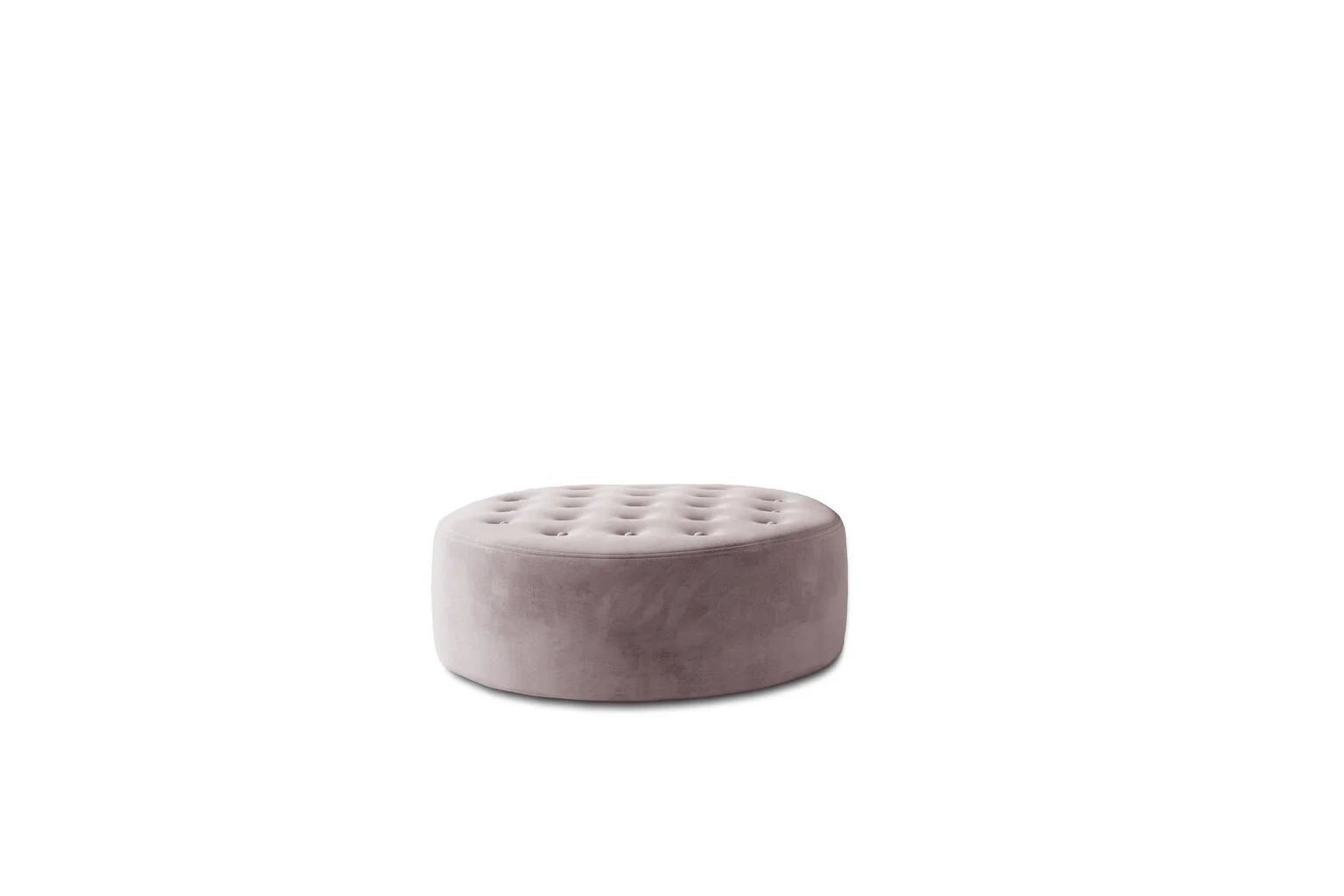 - Moderni ja tyylikäs pyöreä rahi, joka on koristeltu napeilla;