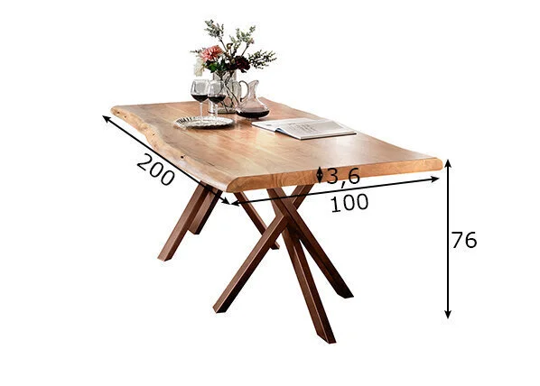 Ruokapöydän kansi on akaasiapuuta. Viimeistely: luonnollinen. Jalat ovat antiikinruskean väristä metallia. Jokainen tuote on ainutlaatuinen ja voi erota kuvan tuotteesta, valmistettu aidosta puusta.