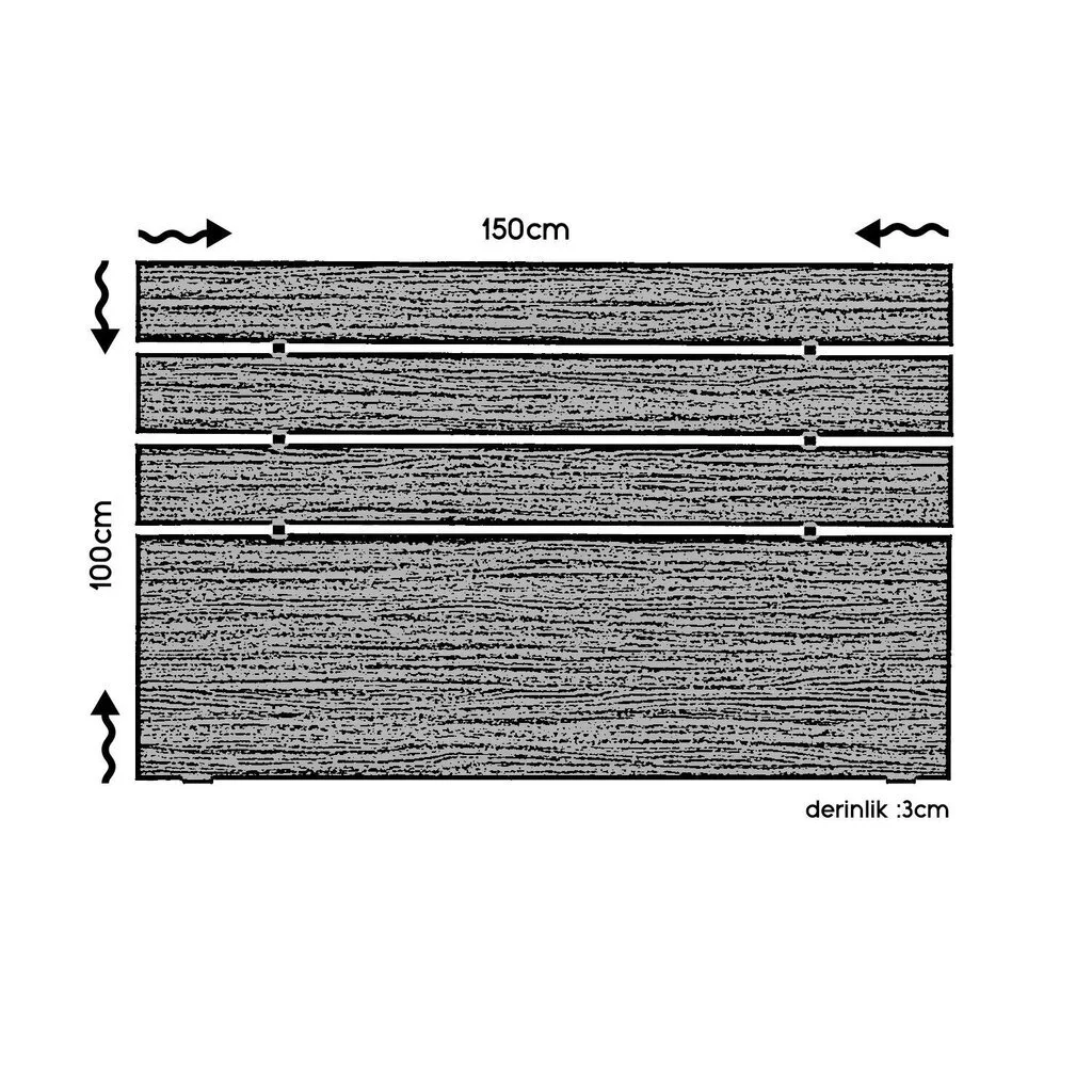 - Päädyn mitat: pituus 150 cm, leveys 3 cm, korkeus 100 cm;