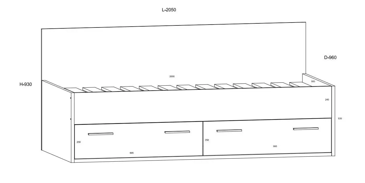 - Sängyn mitat: korkeus – 93 cm, leveys – 96 cm, pituus – 205 cm