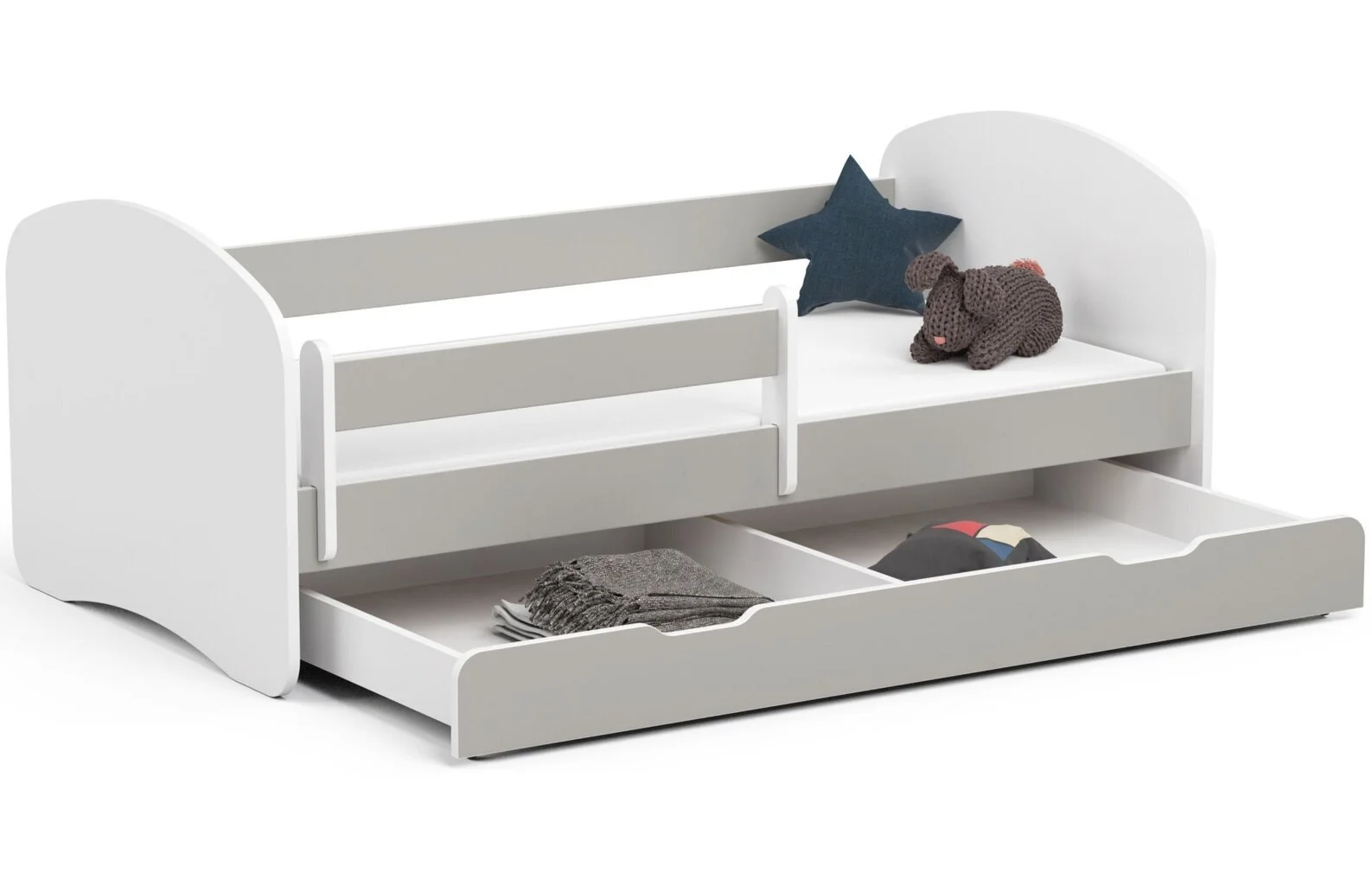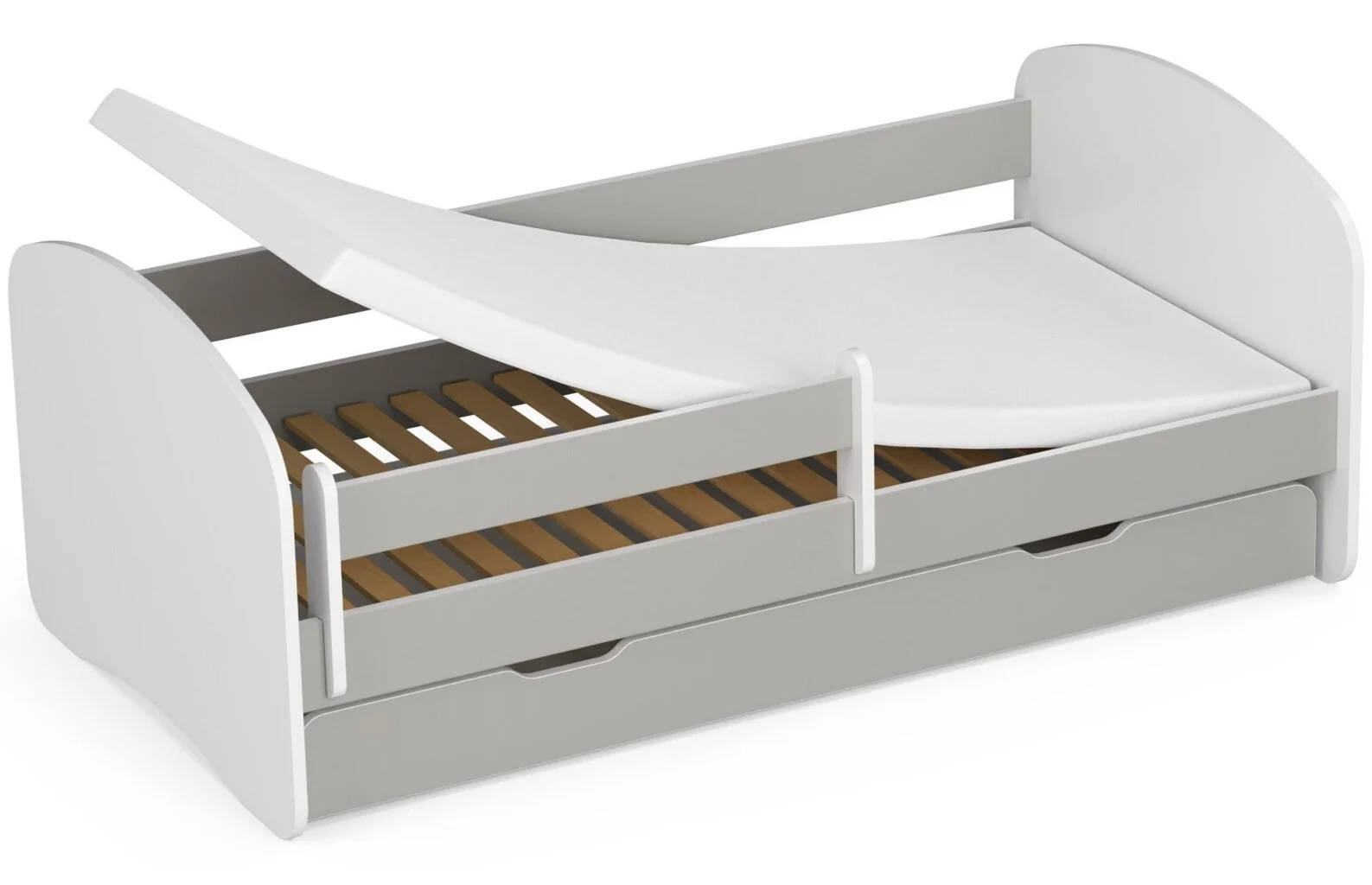 Levyn yläkerros peitetään usein erityisellä kalvolla, joka varmistaa huonekalun lujuuden. Viimeisimpien tuotantoteknologioiden avulla nämä laatat voivat olla kosteudenkestäviä, minkä vuoksi nämä materiaalit eroavat monipuolisuudestaan ja sopivat mihin tahansa huoneeseen. Sänky patjalla, vuodevaatelaatikko ja irrotettava suojapeite NORE Smile, 160×80 cm, valkoinen/harmaa löytää varmasti paikan kodistasi!