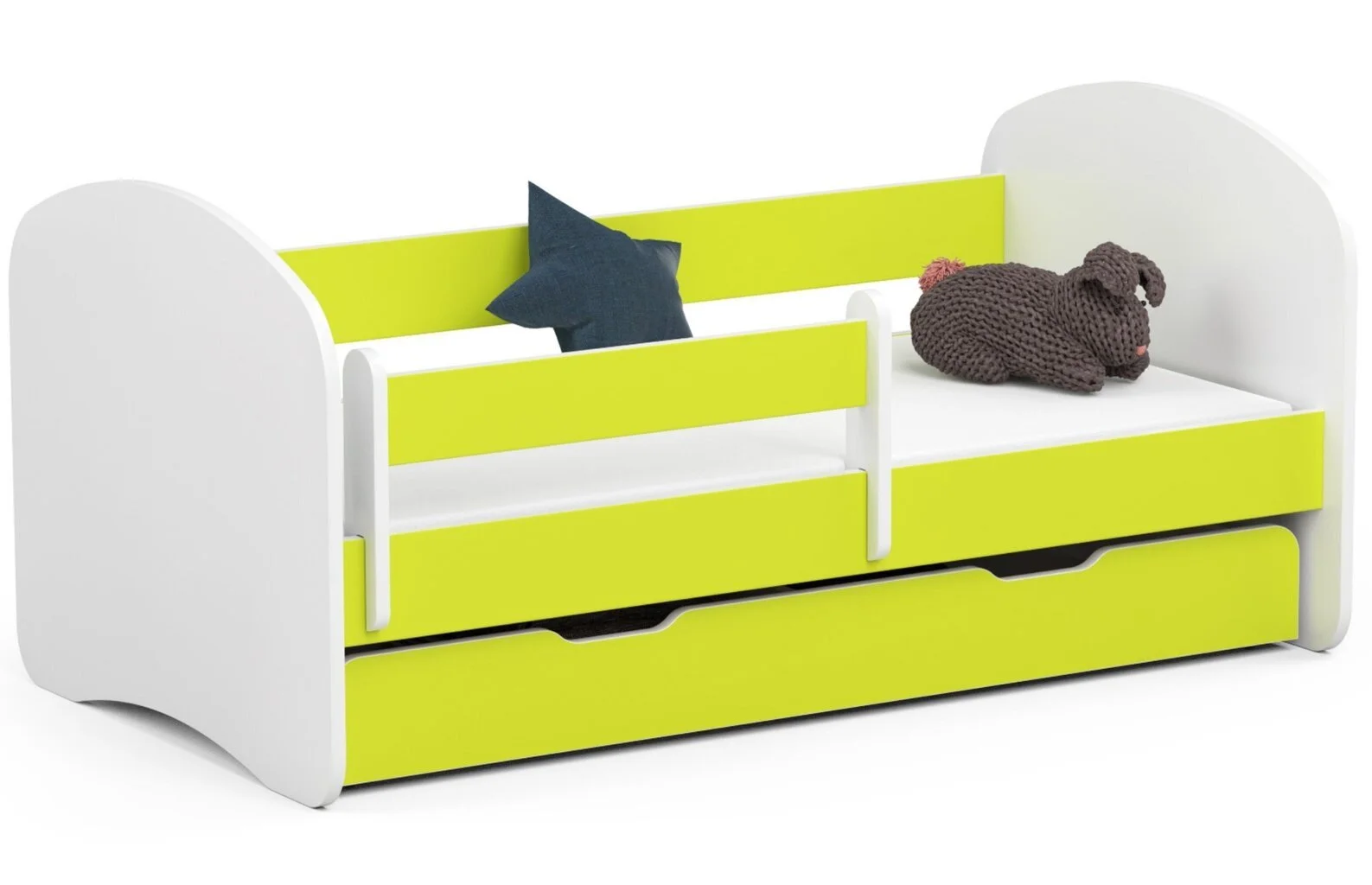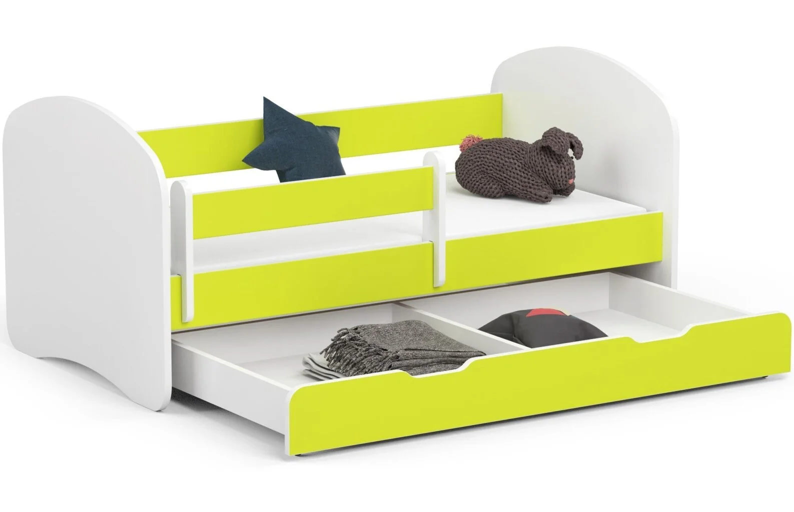 Levyn yläkerros peitetään usein erityisellä kalvolla, joka varmistaa huonekalun lujuuden. Viimeisimpien tuotantoteknologioiden avulla nämä laatat voivat olla kosteudenkestäviä, minkä vuoksi nämä materiaalit eroavat monipuolisuudestaan ja sopivat mihin tahansa huoneeseen. Sänky patjalla, vuodevaatelaatikolla ja irrotettavalla suojalla NORE Smile, 140×70 cm, valkoinen/vihreä löytää varmasti paikan kodistasi!
