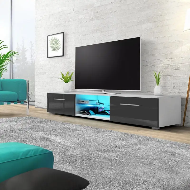 Levyn yläkerros peitetään usein erityisellä kalvolla, joka varmistaa huonekalun lujuuden. Viimeisimpien tuotantoteknologioiden avulla nämä laatat voivat olla kosteudenkestäviä, minkä vuoksi nämä materiaalit eroavat monipuolisuudestaan ja sopivat mihin tahansa huoneeseen. TV-taso Edith, valkoinen/harmaa. löytää varmasti paikan kodistasi!