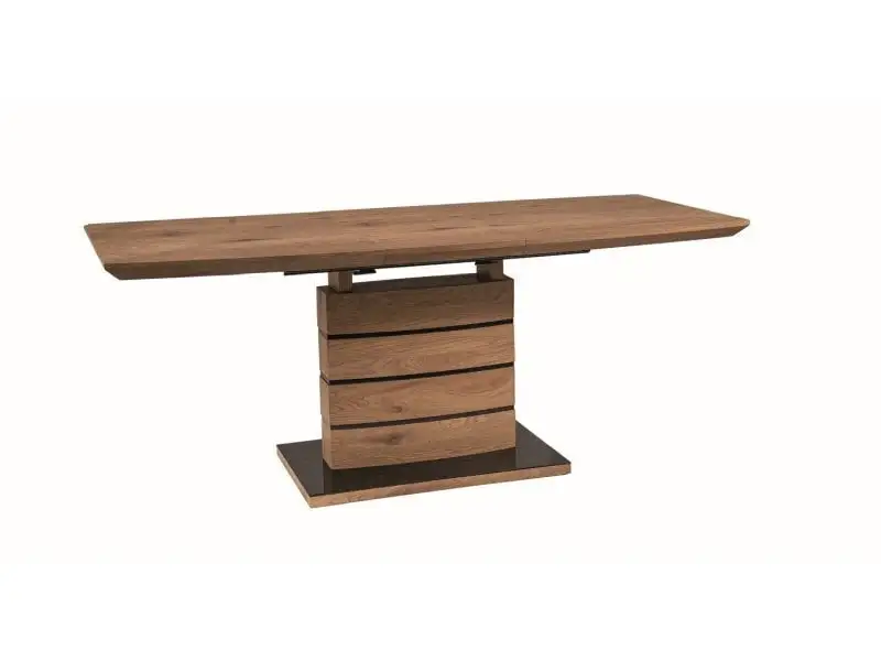 Tällä viimeistelyllä varustetut huonekalut ovat identtisiä massiivipuuhuonekalujen kanssa, joten voit luoda kotiin lämpimän tunnelman ilman suuria investointeja. Sen pinta on lakattu tai öljytty, ja erilaisia tyylejä voidaan käyttää puulajista ja teknisistä ratkaisuista riippuen. Voit olla varma, että Signal Meble Leonardo jatkettava pöytä, tammi yllättää sinut monipuolisella ja helposti asennettavalla muotoilullaan.