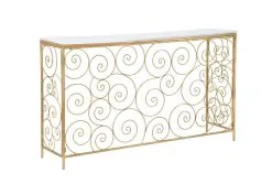 Kaikki nämä modernien huonekalujen ominaisuudet vahvistavat sen tosiasian, että tämän tyylin tuotteet ovat yksinkertaisia ja samalla erittäin yleisiä. Joten ne on helppo sijoittaa kaikenkokoisiin huoneisiin. Sivupöytä Glam, 140×36 cm, kulta/valkoinen pitää niistä, jotka haluavat luoda minimalistisen ja tilavan tilan, jossa on kunnollinen ja raikas luonto.