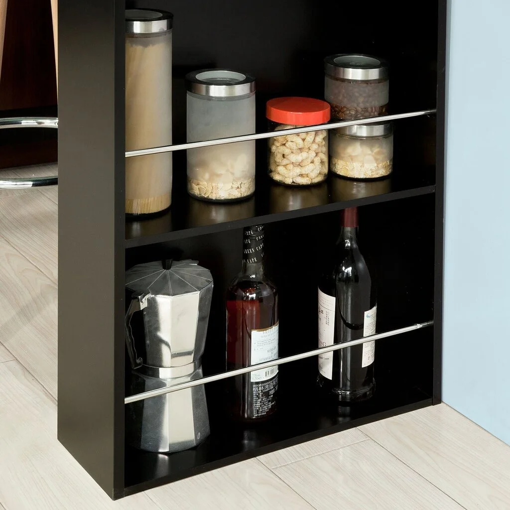 Tästä levystä valmistettuja huonekaluja arvostetaan suuresti lujuudestaan ja kestävyydestään, joten niistä voi tulla pitkäikäinen ratkaisu kotiisi. Tällaisia tuotteita on helppo huoltaa ja puhdistaa, ja ainutlaatuisen rakenteensa ansiosta Keittiön bistrobaaripöytä ja säilytyshylly, FWT17-SCH, musta kestää vaurioita, kuumuutta ja muodonmuutoksia. Huomaa, että jotkut puukuitulevyhuonekalut voivat olla myös kosteudenkestäviä.