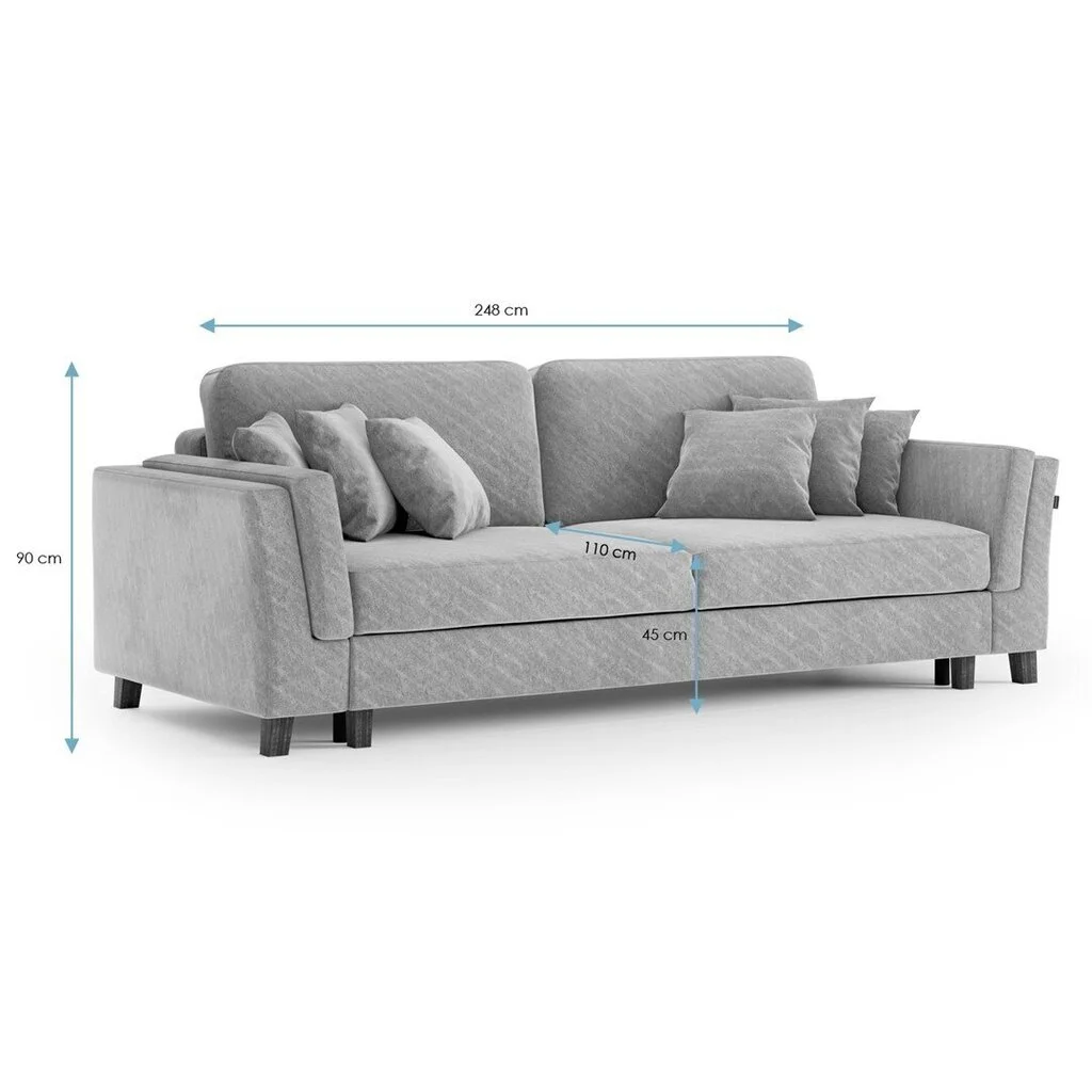 - Sohvan mitat: pituus – 248 cm, syvyys – 110 cm, korkeus – 90 cm