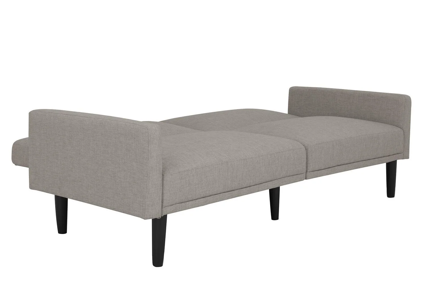 Room Essentials sisältää kaikki modernin vuodesohvan mukavuudet, erittäin mukavasta istuinalueesta vahvoihin käsinojiin, puurunkoon ja moniasentoiseen selkänojan asentoon. Istu, makaa tai lepää. Sopii kirjojen lukemiseen tai hauskanpitoon ystävien kanssa. Se on täydellinen valinta mihin tahansa sisustukseen, joka koristaa sekä olohuonettasi että kotitoimistoasi. Pehmustetut jalat suojaavat lattiaasi naarmuilta, ja kostealla liinalla helposti puhdistettava peitekangas antaa sohvalle uuden ilmeen vuosiksi eteenpäin.