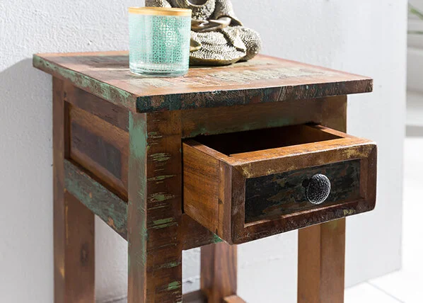 - Ainutlaatuisesti suunniteltu sivupöytä, jossa onlaatikko.