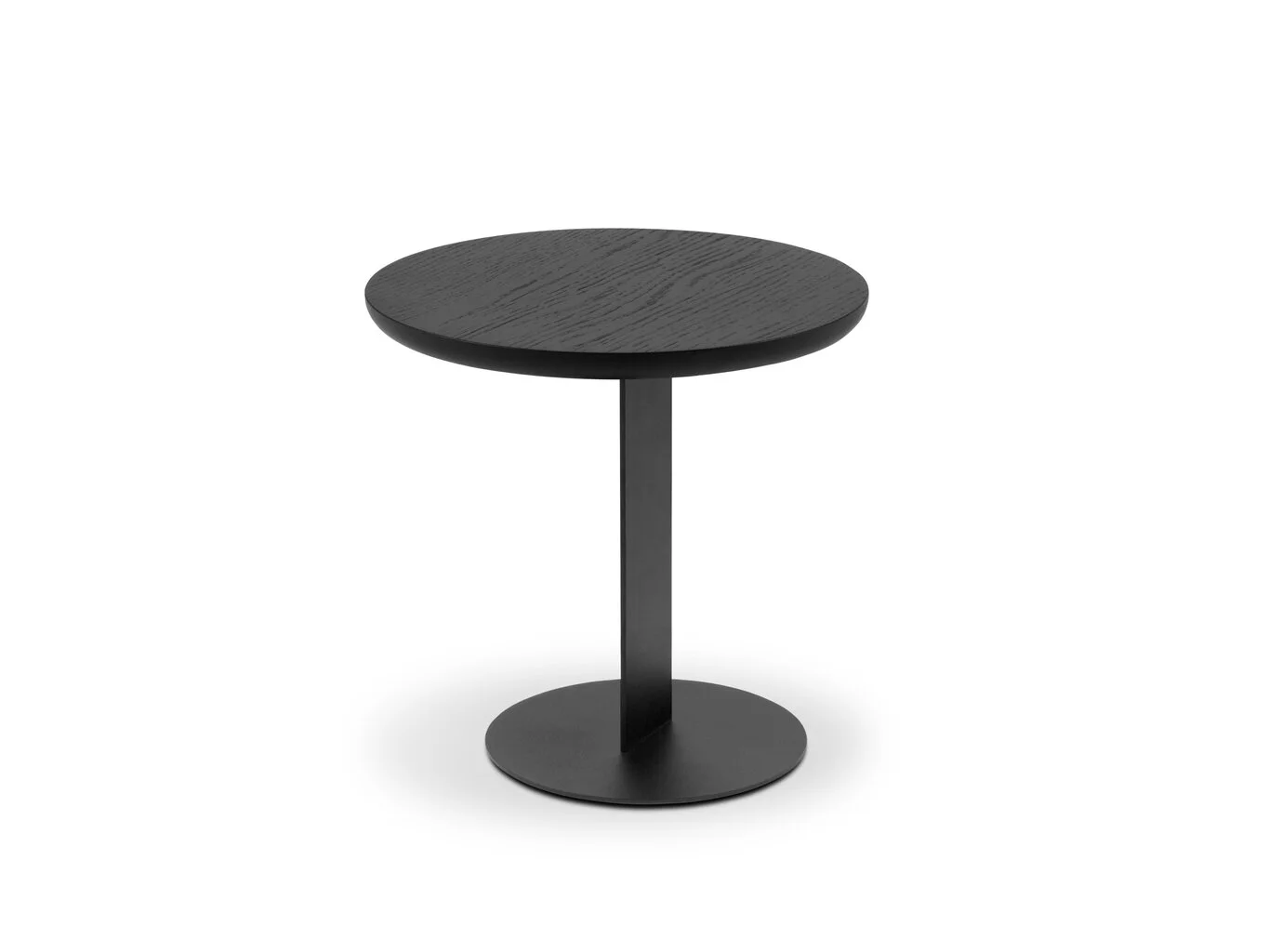 Pöytä on valmistettu mustasta metallirungosta, MDF-levystä ja tammivanerista.