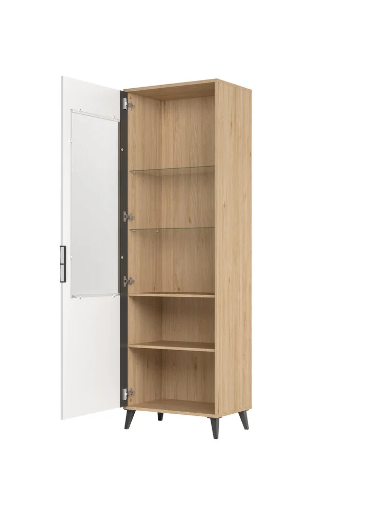 Moet 10 yksiovinen vitriini on tyylikäs ja käytännöllinen huonekalu. Ovi on osittain lasia, joten voit asettaa kauniita esineitä nähtäville.