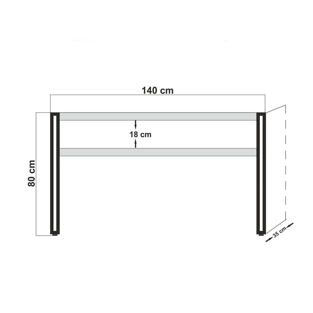 • Pöydän mitat: pituus – 140 cm, leveys – 35 cm, korkeus – 80 cm