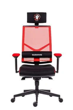 - Mukava toimistotuoli, jossa korkea selkänoja ja päätuki.