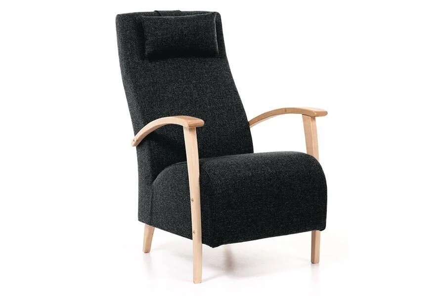 -Nojatuolin selkänoja on viimeistelty, tuote voidaan sijoittaa keskelle huonetta.